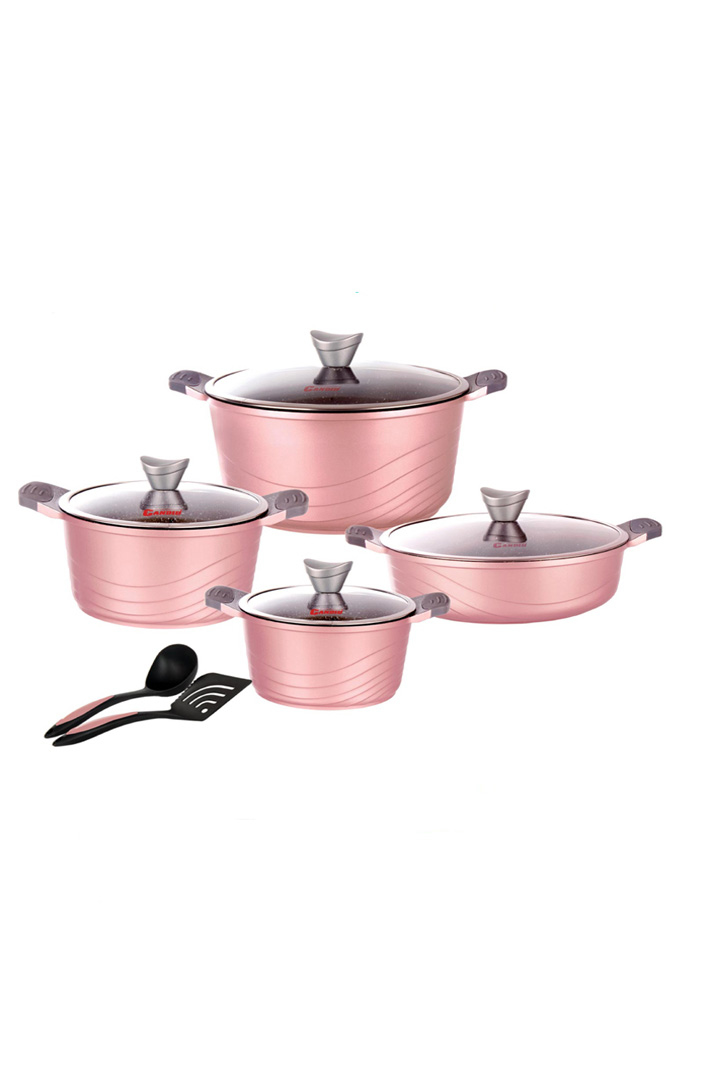 سایز قابلمه:20/24/28 ، تابه دو دسته: 28 محتویات : 2 پارچه کفگیر و ملاقه نوع درب : پیرکس T