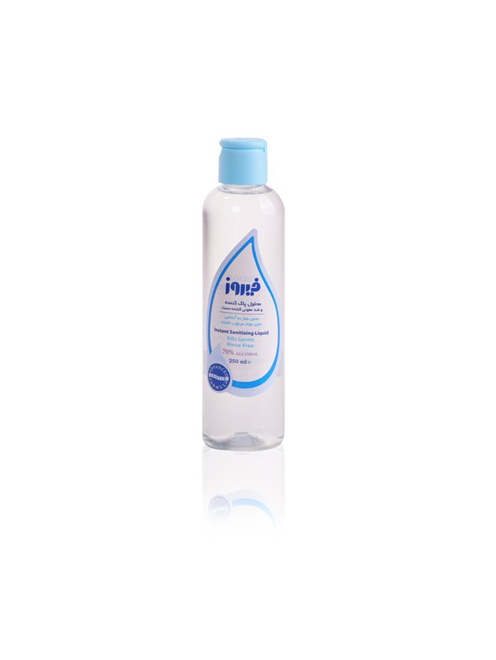 محلول پاک کننده و ضد عفونی کننده دست فیروز بدون نیاز به آبکشی و با جذب سریع در کمتر از چند ثانیه به راحتی در هر شرایطی قابل استفاده می باشد.در ساخت این محلول از الکل اتیلیک یا اتانول استفاده شده که دارای خاصیت ضد عفونی کنندگی ست که با تغییر ساختاری میکروارگانیسم ها مثل باکتری ها، قارچ ها و ویروس ها اثر بیماری زایی اونها رو از بین می برد. اثرات محلول ضد عفونی کننده فیروز تا مدت طولانی به روی دست باقی خواهد ماند و به علت سرعت زیاد در تبخیر و جذب سریع مانع از رسیدن آسیب به بافت های نرم پوست می شود. یکی دیگر از ترکیبات مفید و خاص این محصول خاصیت روغن کرچک می باشد که باعث نرم کنندگی،آبرسانی، رطوبت دهی و حساسیت زدایی آن شده