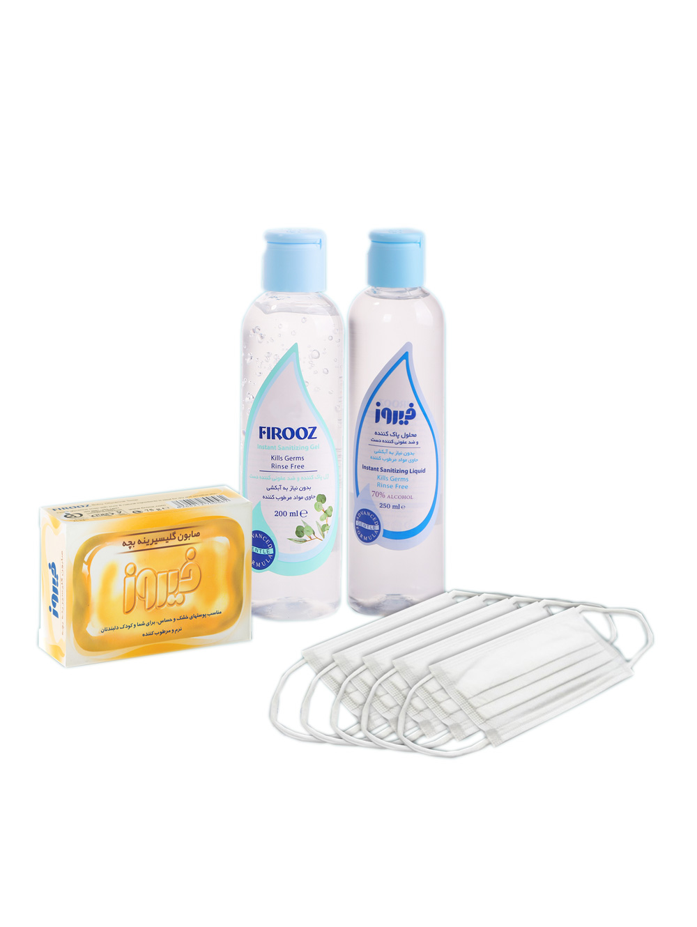 ژل ضدعفونی کننده فیروزحاوی الکل 70درصد بوده که باعث ضدعفونی کامل دست هامیشود این ژل حاوی مواد مرطوب کننده پوست بوده که مانع از خشکی دست هامیشود .علاوه برآن در این محصول به منظور پوشش بوی الکل وهمچنین خوش بو شدن دست ها از اسانس های مجاز آرایشی بهداشتی استفاده شده است